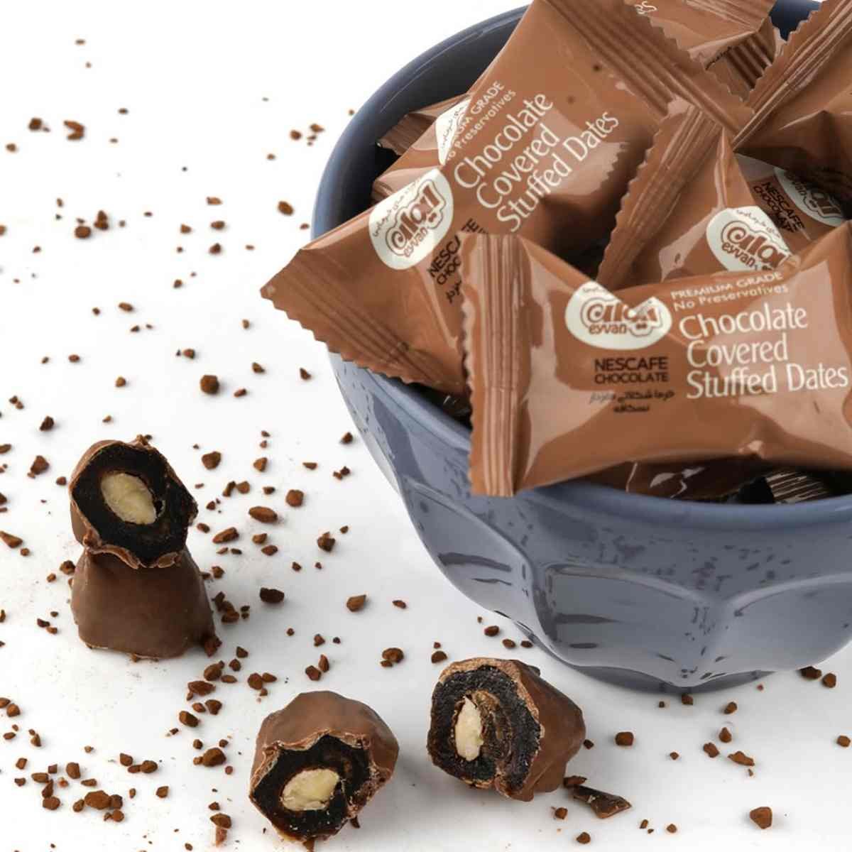 خرما شکلاتی مغز دار مخلوط شکلات تلخ و نسکافه ای ایوان