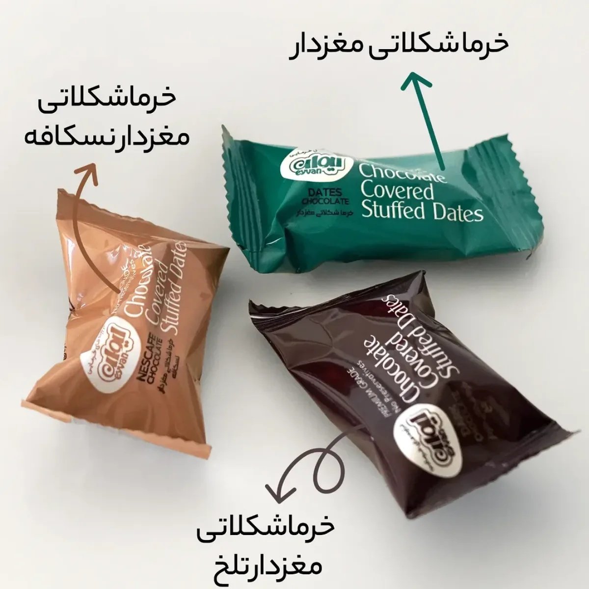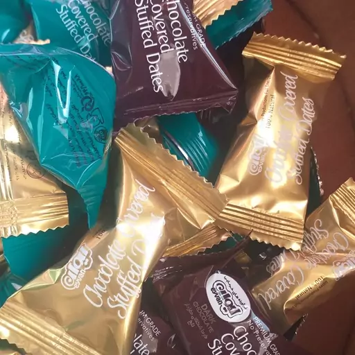 خرما شکلاتی مغز دار مخلوط شکلات تلخ و نسکافه ای ایوان